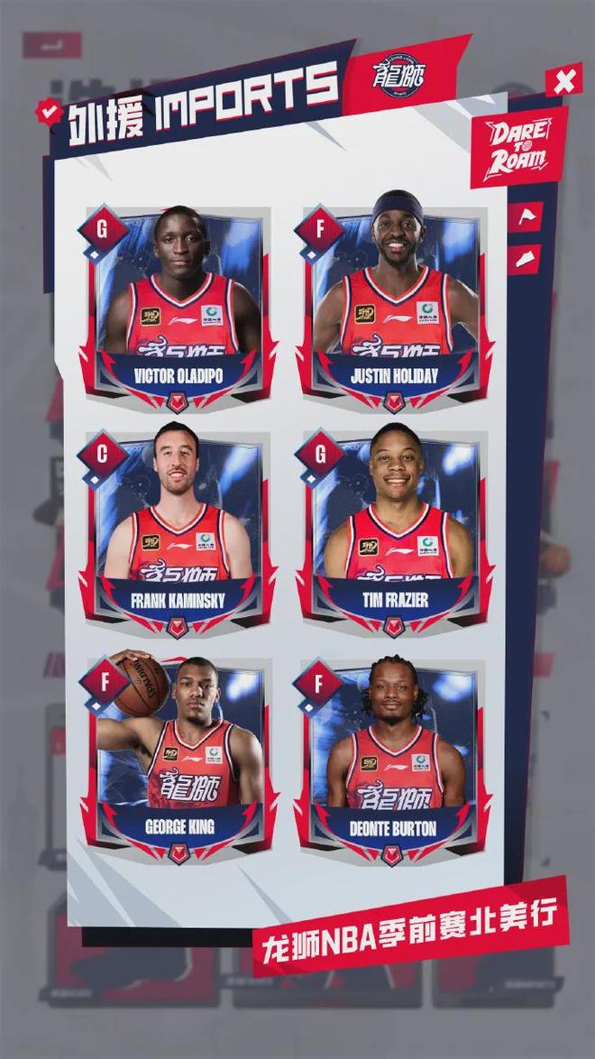 除此之外,广州队还招募了6位强力外援出征季前赛,包括两届NBA全明星后卫奥拉迪波。