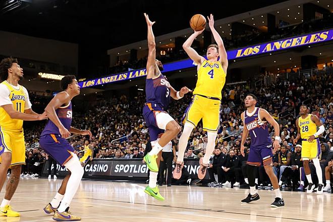 本场比赛中,湖人的替补侧翼新星道尔顿-克内克特(Dalton Knecht)的表现依然是有些不太理想的。克内克特全场出场33分56秒,投篮11中3,三分线外7中2,罚球4中4,得到了12分6篮板3助攻1盖帽的数据,还有2次犯规,正负值为+6。克内克特在本场比赛中得到了大量的出场时间和不少的出手机会,他的出场时间和出手次数都排名全队第一位,但是他并没有将自己的得分能力和投射能力发挥出来,他的进攻效率简直是惨不忍睹。克内克特在其他方面的表现也是比较一般的,他的防守能力也是比较有限的。总体来看,克内克特在攻防两端的表现都是非常一般的,他依然没有将自己的特点完全发挥出来。